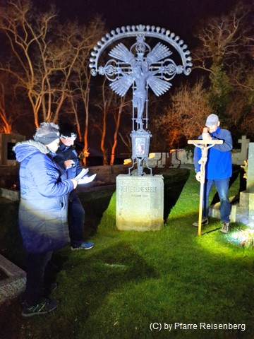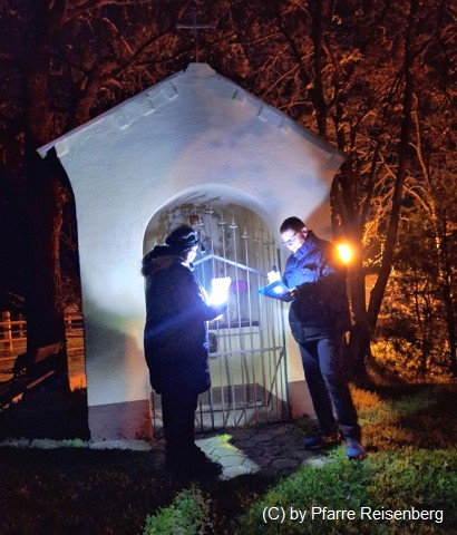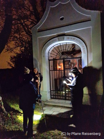 Nach einem Gesang und Gebeten wird im Gebet zur nächsten Station, der Plessl Kapelle gegangen.