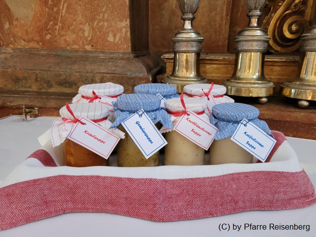 Vor der Kirchentür konnten die Messbesucher beim Rausgehen die Suppen auswählen und mit nach Hause nehmen.
