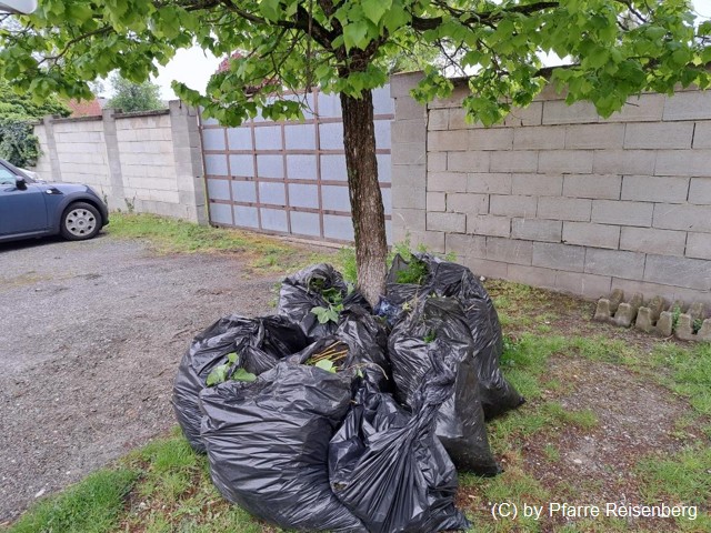 Mehrere Helfer haben in einigen Stunden neun Säcke mit Efeu, Wurzeln und anderem Gewächsen gefüllt